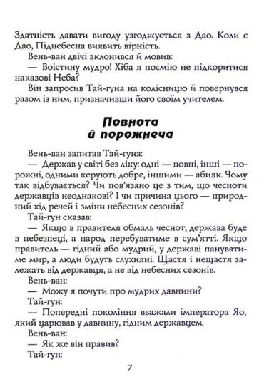 У пропонованій книзі зацікавлений читач ознайомиться зі скарбами військової думки давнього Китаю, розкриє зміст метафоричних понять «повнота» і «порожнеча», «шість сторожів» і «три скарби»; дізнається про правила стосунків між правителем і підлеглими, стратегії ефективного управління в державі, найважливіші засади воєнного мистецтва, правильні дії під час наступу, відступу й оборони, настанови для полководців, чесноти воїнів, стратегічну силу армії; з’ясує суть принципів Дао війни, а також секретних учень тигра, леопарда і собаки. Крім цього, отримає відповідь на низку питань, які імператор Тайцзун із династії Тан поставив своєму полководцеві Лі Цзіну (Лі Вейгуну), про тактику і стратегію армії на полі бою.