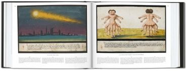 The mesmerizing images deal with both biblical and folkloric tales, depicting stories from the Old Testament and Book of Revelation as well as events that took place in the immediate present of the manuscript’s author. From shooting stars to swarms of locusts, terrifying monsters to fatal floods, page after page hypnotizes with visions alternately dreadful, spectacular, and even apocalyptic.