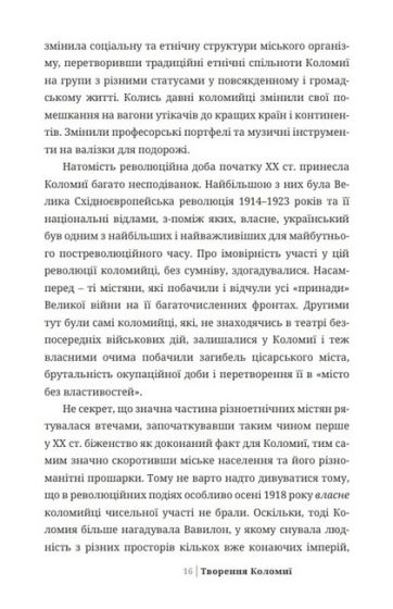 Виклад матеріалу структуровано за хронологічно-тематичним принципом, зокрема розглядаються соціальні, політичні, етнічні, культурні та мілітарні аспекти історії Коломиї, яка вперше за багато століть чужинецької влади почала творити власне українське життя.