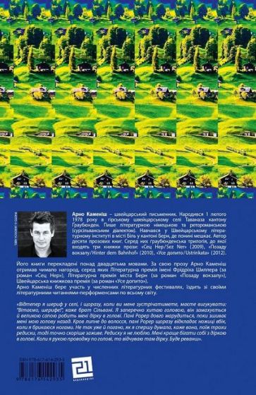«Позаду вокзалу» – друга книга з ґраубюнденської трилогії Арно Каменіша, в якій автор описує швейцарське гірське село, де він народився й виріс, де провів свої молодші роки. Оповідь у романі ведеться від малого хлопця, дітвака, який по-особливому сприймає світ довкола – село у вузькій долині між високими горами, горян, їхній побут, стосунки поміж ними.