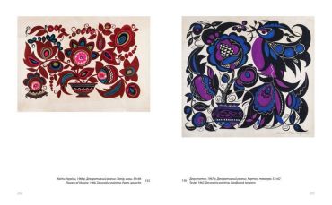 Liubov Panchenko’s Art album is the first and, so far, only publication of her artworks, which returns her name to the Ukrainian Art after decades of oblivion. Only thanks to the publications in “Radianska zhinka” (Soviet woman) magazine back in 1960s and -70s of her embroidery sketches and fashion designs, which carried the expressively Ukrainian folk motifs, the Ukrainian public had a glimpse at her broad talent. Being a very gifted designer Liubov Panchenko has been working in different art genres. Among her works are lyrical watercolors, linocuts, ornamental fantasy wall paintings and unparalleled collages made from fabric patches. Panchenko’s entire oeuvre was conspicuously Ukrainian in its very essence, something that was judged by Communist regime as “bourgeois nationalistic” and, therefore, heavily censored and restricted. That is why Liubov Panchenko had no personal exhibitions or publications during Soviet times.