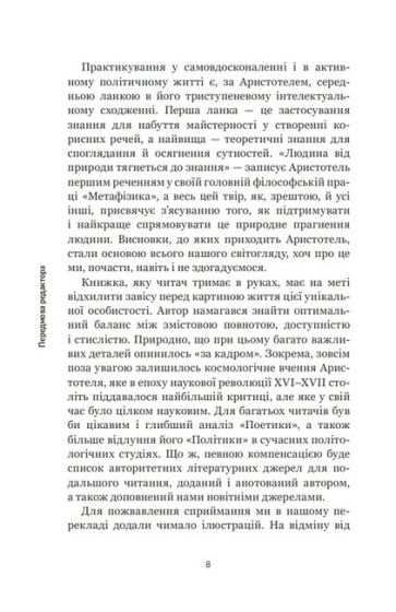 У кожній біографічній довідці про Аристотеля ви майже напевно прочитаєте, що Аристотель — це давньогрецький філософ і природодослідник, який народився понад 2400 років тому і який своїми працями здійснив колосальний вплив на всю інтелектуальну історію Західної цивілізації. Мабуть, буде й дещо конкретизовано: Аристотель став одноосібним засновником двох наук — логіки й біології, але головні його досягнення були пов’язані з розвитком філософії (вчення про буття й пізнання), психології, політології, етики та естетики. Та коли ви захочете хоч трохи заглибитись у суть цих здобутків Аристотеля, то без попередньої підготовки майже напевно зазнаєте невдачі: Аристотель надто глибокий, його вчення надто всеохопне, а виклад — часто фрагментарний та «рубаний». Ось тут вам і допоможе ця видання, яка є «дуже коротким уведенням» до Аристотеля, написаним авторитетним та відомим у світі дослідником його спадщини. Книжка є рідкісним поєднанням фаховості, доступності, стислості й інформативності. До того ж — це перша біографічна книга про Аристотеля українською мовою.