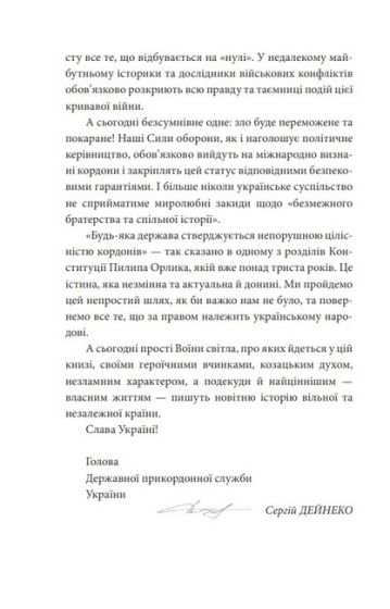 У книзі зібрані воєнні історії військовослужбовців прикордонних загонів, спецпризначенців окремого мобільного прикордонного загону, Морської охорони, медично-евакуаційних груп, медиків мобільних госпіталів, тих, хто ризикує своїми життями задля здобуття Перемоги України на полі бою.