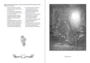 Це видання Святого Письма містить 241 ілюстрацію французького художника Гюстава Доре. Виконані ще в 1864 – 1866 роках, вони досі залишаються взірцем живого осягнення засобами графіки багатовікової біблійної історії Старого і Нового Завітів від створення світу до Одкровення Йоана.