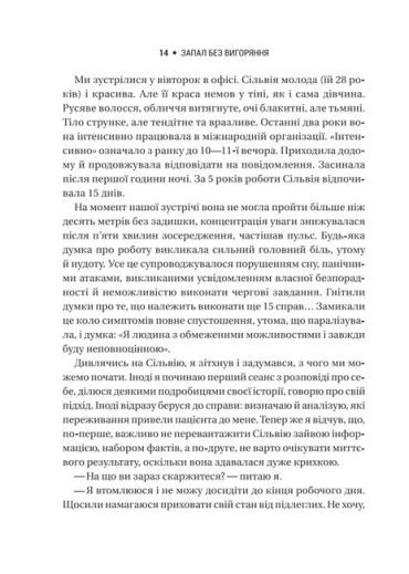 Існує хибна думка, що вигоряння — це «хвороба» лінивих і неуспішних людей. Натомість вигоряють керівники великих компаній, топменеджери, бізнесмени, лікарі, зірки світового масштабу. Виснажує надмір робочих обов’язків, які вони виконують упродовж ненормованого робочого дня. Як зрозуміти, що ви (ваші підлеглі) емоційно вигоріли? Чому нормально зраджувати начальникові надії та прохати про допомогу? Де шукати мотивації та щастя під час війни? Відповіді — на цих сторінках. А ваш піковий рівень стресостійкості та психологічного добробуту вже не за горами.