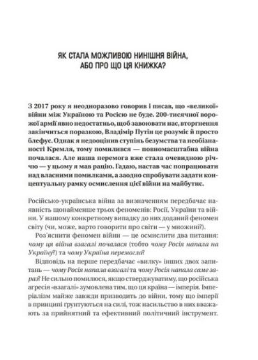 Росія програла нинішню «велику» війну – у цьому немає сумнівів. Бойові дії ще триватимуть, але своїх стратегічних цілей в Україні Кремль вже ніколи не досягне. То чому ж ця війна взагалі стала можливою і чому Москва вірила у свій блискавичний успіх на полі бою? Яке значення має Україна для Путіна особисто та Росії в цілому? Звідки взялися міфи про «ісконно русскій» Крим та «один народ»? Чим закінчиться війна і яке майбутнє чекає на Росію та Україну?