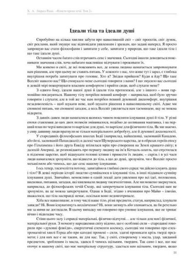Другий том філософських есеїв, статей та лекцій аргентинського філософа Хорхе Анхеля Лівраги буде цікавий тим, хто замислюється над питаннями про сенс життя, природу людини, моральні чесноти, проблему вибору, закони розвитку історії та людства. «Ідеали тіла та ідеали душі», «Іти поміж мертвих», «Внутрішнє дзеркало», «Хвороби сучасного світу», «Культура безкультурності», «Як здійснюються мрії» — ці та інші есеї автора розкривають погляд сучасного філософа на життя людини та її взаємини зі світом.