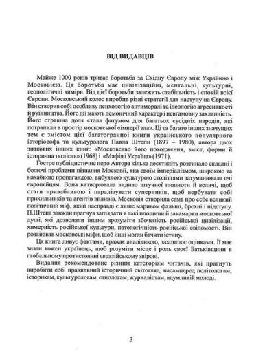 У цій книзі Павла Штепи - автора широко відомих в українському світі праць «Московство» та «Мафія і Україна» - подано широкоформатний зіставний аналіз характерологічних рис українців і росіян, показані взаємини між цими народами в політичному, економічному, культурному, релігійно-конфесійному та ін. аспектах.