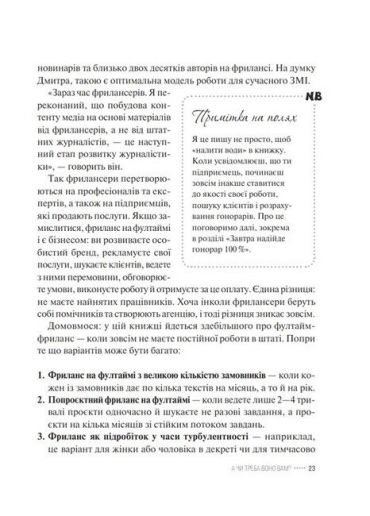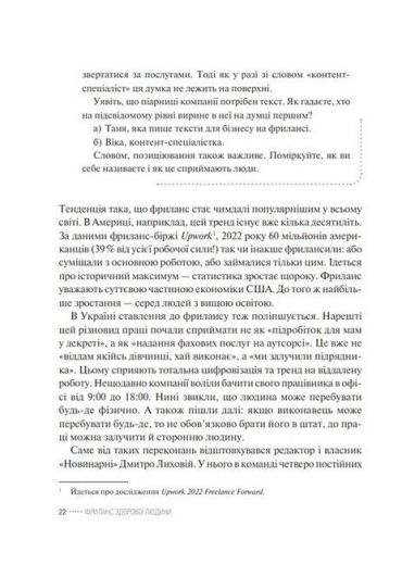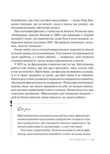 Якихось 10 років тому фрилансери вважалися «безробітними з халтурками» і трошки фриками. Зараз фриланс на своєму піку: якщо можна працювати віддалено, навіщо прив'язуватися до одного роботодавця?! Але як порахувати прайс на свої тексти? Як не потонути в прокрастинації? Як вести переговори із замовниками й не провалювати дедлайни? Авторка цієї книжки провела два десятки інтерв’ю з досвідченими виконавцями та наймачами, щоб вивести формулу комфортного фрилансу. Вийшла добірка історій і лайфхаків для тих, хто давно мріяв звільнитися в нікуди.