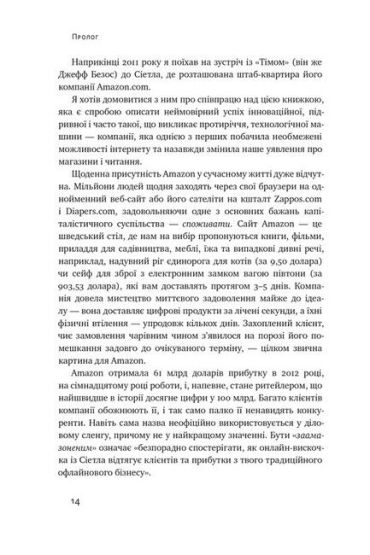 Під час написання цієї книги автор спілкувався з сотнями колишніх і теперішніх працівників Amazon, з рідними і друзями Джеффа Безоса. Такої ґрунтовної біографії компанії, що назавжди змінила те, як ми купуємо і читаємо, світ ще не бачив.