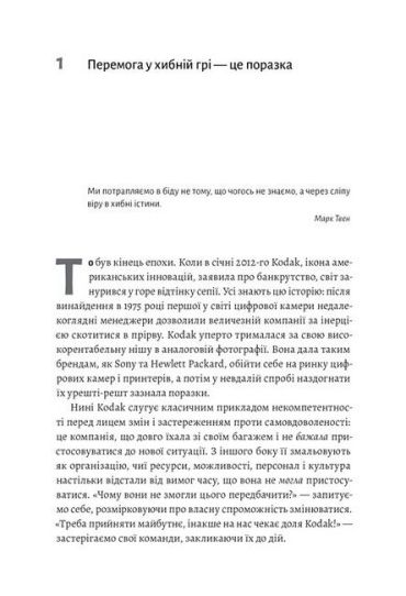 Сьогодні гра за старими правилами дорівнює поразці, яка надто дорого обійдеться вашому бізнесу. Щоб досягти успіху в цьому світі, вам потрібно змінити свій погляд на конкуренцію, зростання та лідерство. Експерт зі стратегії Рон Аднер у книжці «Перемогти у правильній грі. Як тримати удар у мінливому світі» пропонує новий спосіб мислення, ілюструючи проривні ідеї переконливими прикладами.