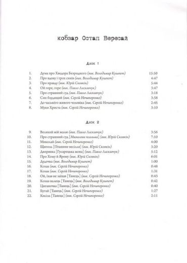 До збірника додаються два СD із аудіозаписами всіх творів кобзаря Остапа Микитовича Вересая, покладених на ноти Миколою Віталійовичем Лисенком.