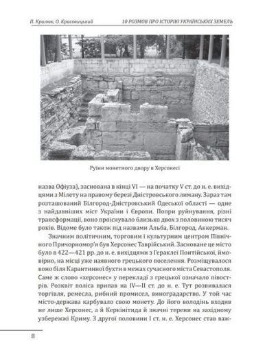 Автори у формі бесіди-діалогу розмірковують про історичні події, що відбувалися на українських землях протягом різних історичних епох — від античності до новітньої історії. В різні періоди окремі території нашої країни були складовою частиною різних держав, що відобразилося на її етнічному складі, культурі, релігії. Аналізуючи події минулого з сучасних позицій, автори допомагають читачам сприйняти по-новому ключові історичні постаті та їхній вплив на становлення і розвиток української державності, переосмислити відомі історичні факти.