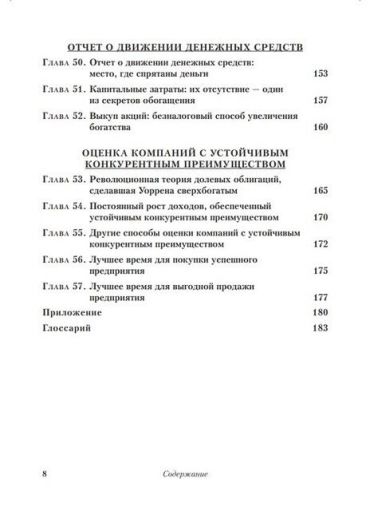 Освоив основные принципы и методы интерпретации финансовых отчетов, которым следует Баффет, проводя инвестиционный анализ предприятий, вы научитесь с высокой точностью прогнозировать, каким компаниям суждено победить в неравной конкурентной борьбе, а каким — сойти с дистанции, и поэтому их следует избегать любой ценой.