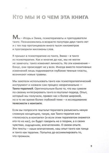 И танго, и психотерапия – это деликатесы. Они, как и эта книга, - для тех, кто любит нюансы, чувствует оттенки, хочет растягивать удовольствие и смаковать послевкусие.