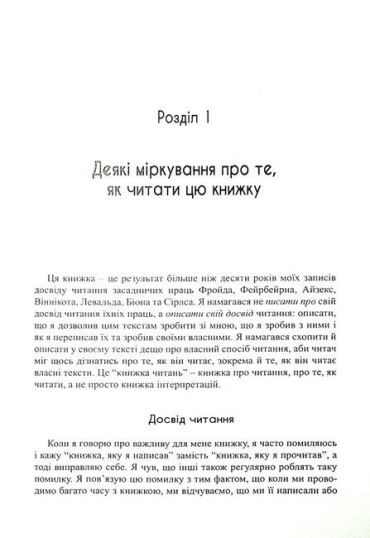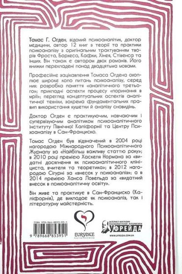 В цих психоаналітичних текстах Томас Огден, залишаючись глибоко зануреним в атмосферу класичних психоаналітичних праць, виходить далеко за межі психоаналізу. Він пропонує нам слідувати філософській традиції читання як способу формулювання власних думок в атмосфері прочитаного та “творче прочитання” як традицію інтроспекції. У запропонованих фрагментах Фройда, Віннікота, Біона та інших авторів Томас Огден пропонує знайти ті слова і думки, які поки мовчали в нас, а, також, побачити в них нові обриси наших автопортретів .