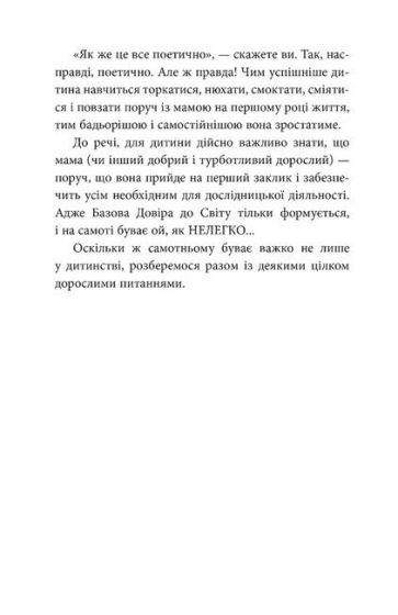 Книга присвячена повсякденному спілкуванню та взаєминам з маленькою (від народження до шести років) дитиною. До неї увійшли роздуми та поради батьків та фахівців та відповіді на деякі питання, із якими автор, як дитячий психолог, зустрічалася у своїй практиці. Жива мова та невимушена манера спілкування робить книгу цікавою для широкого кола читачів, особливо батьків та родичів маленьких дітей.