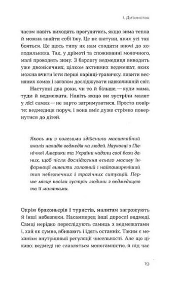 Авторка розповість і про легендарних левів-людожерів, і про те, що робити, коли вам назустріч вийшов вовк чи ведмідь (маленький спойлер: краще віддати йому відерце з ягодами й не намагатися забрати впольовану здобич). Як каже сама зоологиня, ця книжка не про тварин, вона — про любов до них, про вміння розуміти їх і жити поруч.