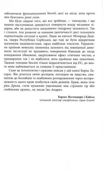 Наративи про Боснію досі майже завжди зосереджені на 90-их, війні та заплутаній системі інституцій, що утворилася в результаті Дейтонських угод. Зазвичай у них також перебільшені етнічні та релігійні елементи. Насправді ж, якщо вийти за межі причин війни та її численних трагедій, ми дуже мало знаємо про її забуті наслідки, особливо коли «ефект CNN» давно минув. І, що не менш важливо, ми так само мало знаємо про Боснію сьогодні: суспільство, сформоване минулим, але й суспільство, що зіткнулося з мінливою динамікою ХХІ сторіччя. Суспільство, яке переслідують не тільки трагедії війни, а й затяжна суспільна криза, яку довгий час не помічали. У цій книзі автор намагається описати дещо інший образ Боснії через двадцять років після війни. До певної міри це оповідь про сільську Боснію, що ґрунтується на безпосередньому досвіді автора, а особливо про долину річки Дрина, що найбільше потерпіла від етнічних чисток 90-их.