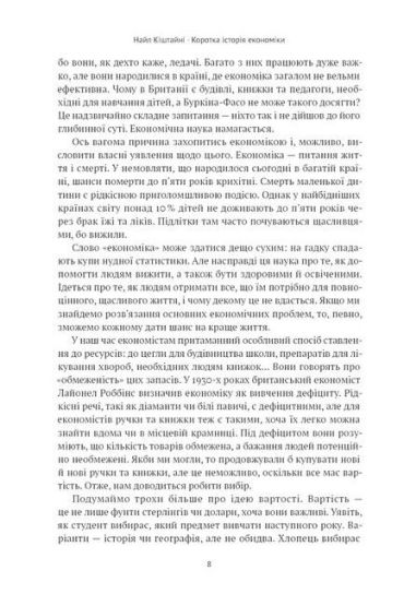 Ви дізнаєтеся, чому економіка — це питання життя і смерті, як вивчення цієї науки може змінити світ на краще, чому давніх філософів і сучасних людей хвилюють ті самі питання та як економіст Рот уможливив вигідний обмін нирками. А також зможете чітко відрізнити погляди Маркса від ідей Гаєка, обережний капіталізм від безрозсудного та довідаєтеся, чому економічні знання потрібні всім, а не тільки фахівцям.