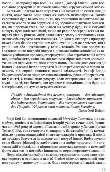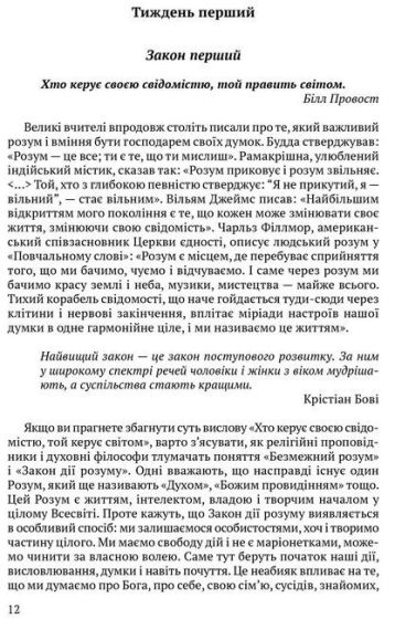 Ця книга позачасова і позакультурна, у ній зібрана вся мудрість віків. Вона стане вашим добрим помічником у розумінні головних принципів наповненого життя, надихатиме і допоможе здобути гармонію почуттів і вчинків, налаштує на позитивне мислення і, зрештою, стане ключем до пізнання найважливіших таємниць – законів життя. «Духовні закони працюють у світі так само чітко, як і закони фізики. Чи вивчати ці закони і потім жити згідно з ними – вирішувати нам»,– наголошує Джон Темплтон – американський мільярдер і філантроп, який більшу частину своїх статків пожертвував на потреби релігії та науки. Людське життя доволі коротке, і від нас залежить, як прожити його щасливо, успішно і корисно, як стати духовно багатшими і піти за своїм покликанням, як дарувати любов ближньому і дякувати за все, від чого душа співатиме, а розум стане яснішим.