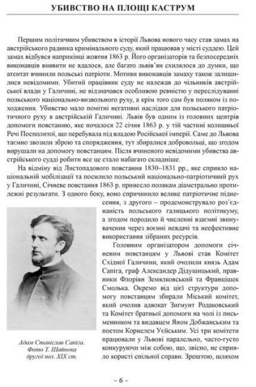 Книга присвячена історії політичних убивств та замахів, учинених у Львові у середні ХІХ – першій половині ХХ ст. На основі документів, спогадів та пресових публікацій детально висвітлюються здійснені у місті замахи на Анджея Потоцького, Юзефа Пілсудського, Станіслава Собінського, Івана Бабія, Отто Бауера, Гавриїла Костельника, Ярослава Галана та ін. Усі описані у книзі події представлені в широкому контексті політичного життя Австро-Угорської імперії, Польської Речі Посполитої міжвоєнного часу, західноукраїнських земель періоду німецької та радянської окупації. Видання адресоване аматорам та вчителям історії, усім, хто цікавиться політичною історією України ХІХ–ХХ ст.