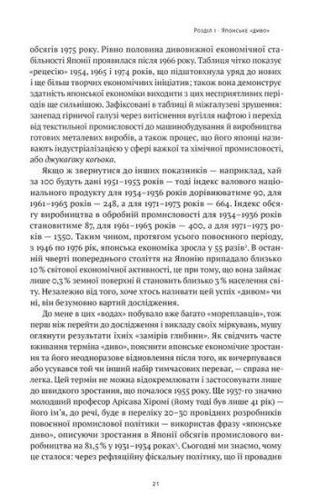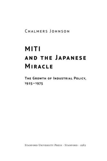 Чалмерс Джонсон показує, що японське «диво» було цілком рукотворним і гарно спланованим. Автор посвячує читача в роботу мозкового центру економічних реформ — Міністерства міжнародної торгівлі та промисловості Японії. Саме там, за зачиненими дверима, влада та бізнес разом виробляли стратегічні рішення, що вплинули на міжнародний успіх Mitsubishi Heavy Industries, Toyota Motor Corporation, Sony Corporation тощо.Замість чекати на «диво», японці його проєктували й планомірно втілювали в життя. Україні слід вивчити цей урок.