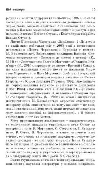 Монографія є першим у сучасному українському літературознавстві дослідженням епістолярної спадщини українського руху опору на матеріалі листів В. Марченка, Є. Сверстюка, І. Світличного, В. Стуса, В. Чорновола як певного типу тексту. Виявлено історико-літературну, художньо-естетичну та культурно-етичну специфіку цього епістолярію, визначено його роль у культурному житті 60-х рр. XX ст. Феномен українського літературного шістдесятництва розглянуто з погляду термінологічного осмислення поняття в історії української літератури II пол. XX ст., епістолярну есеїстику шістдесятників визначено як явище альтернативного літературознавства. Досліджено екзистенційний вимір епістолярної спадщини шістдесятників. Здійснено посутні кроки в осмисленні стильових домінант таборового листування шістдесятників, серед яких на перший план вийшли прийоми іронії, езопової мови та підтексту.