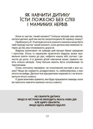Ця книжка - не збірка кулінарних рецептів, хоча цікаві рецепти в ній таки є. Це книга про психологію їжі. Про правильне формування харчових звичок у малюка та всіх членів сім'ї. Усередині ви знайдете прості алгоритми щодо того: