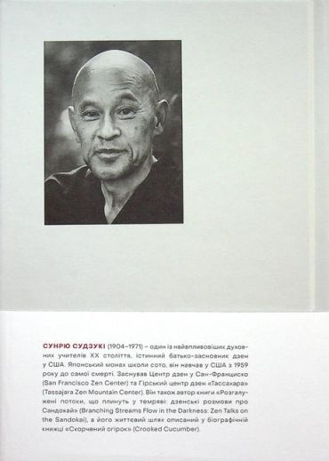 У 1959 році Сюнрю Судзукі приїхав до США та зостався там до самої смерті. Він лишився, бо побачив, що в американців свідомість початківців, що вони практично не мають упереджень щодо дзен, що американці доволі відкриті й переконані, що він допоможе їм у житті. Він побачив, що їхнє сприйняття дзен може дати їм справжнє дзен-буддистське життя. Перша чернетка цієї книжки постала з розшифровки розмов Судзукі та його учнів, що їх декілька років укладала Меріен Дербі – близька послідовниця Судзукі-росі. Для більшості читачів ця книжка стане прикладом того, як майстер дзен розмовляє і вчить. Стане інструкцією щодо практикування дзен, життя за принципами дзен, тими настановами, що уможливлюють практику дзен. Будь-якого читача ця книжка заохотить осягнути власну природу, власну свідомість дзен.