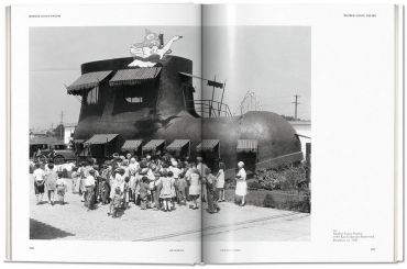 Проте вони процвітали, особливо вздовж американського Сонячного поясу, зокрема, в Південній Каліфорнії, оскільки власники потурали своїм творчим імпульсам у вигляді гігантських, ексцентричних конструкцій - від сов, ляльок, свиней і кораблів до кавників і фруктів. Їхні символічні наміри були безхитрісними, проте вони були маргіналізовані історією. Але за останні 40 років архітектурні аномалії Каліфорнії відновили свою цілісність, і тепер їх відзначають у цьому нещодавно переглянутому компендіумі будівель "Божевільна Каліфорнія".