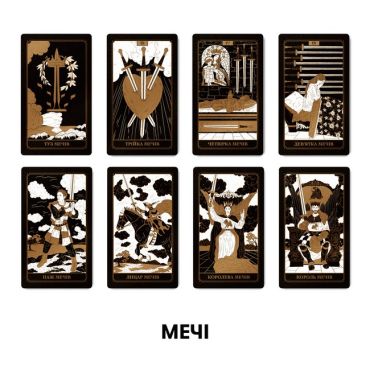«Золота колода» — про ворожіння із особливим вайбом. Вона виконана у чорно-золотих тонах, проте її символічна основа збережена максимально наближеною до оригінала.