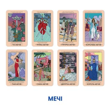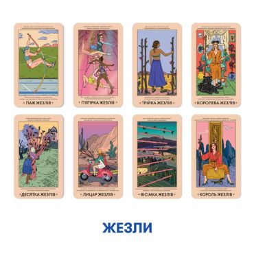 У цій колоді таро зібрані всі незалежні прояви жінок: від форм тіла до ремесла занять, від улюбленого хобі до домашніх справ, від малого до дорослого віку.