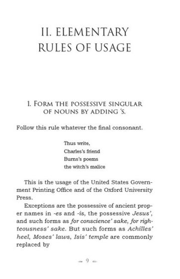 The Elements of Style is some kind of examples’ collection of all kinds of styles of writing very different works. It comprises eight "elementary rules of usage", ten "elementary principles of composition", "a few matters of form", a list of 49 "words and expressions commonly misused", and a list of 57 "words often misspelled".