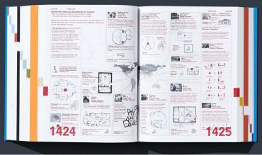 In addition to comprehensively updated texts and new images, this edition is designed and produced to visually (and physically) embody the immense scope of its subject matter: Custom split-spine binding: our printer modified their industrial binding machine to allow for the flexible, eight-centimeter thick spine