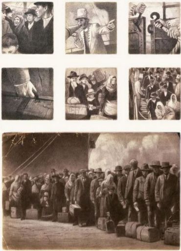 Прибуття – історія про імміграцію, яку автор розповідає малюнками без жодних слів, і яка ніби прийшла до нас з давніх забутих часів. Чоловік лишає свою дружину та дитину у збіднілому місті, в пошуках кращих перспектив у невідомій країні по інший бік широкого океану. Це історія боротьби та виживання у світі незбагненного насильства, збурень та надії. Видана 2006 року, книжка зібрала 32 нагороди та премії і тримає перше місце серед найкращих безмовних графічних історій світу за версією Goodreads.