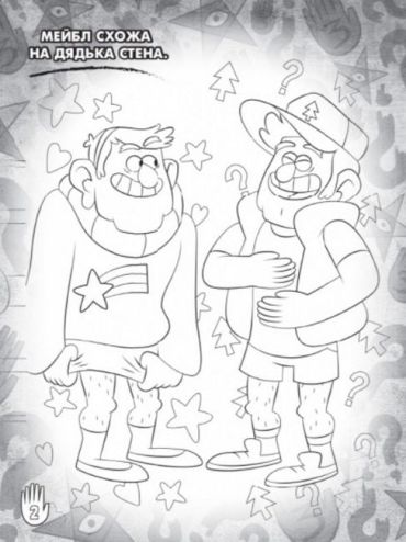 Зустрічай улюблених персонажів "Гравіті Фолз" на сторінках цієї загадкової розмальовки. У загадковому містечку знову безліч пригод і таємниць! Усередині книжки окрім сторінок для розфарбовування багато цікавих завдань. Понад 30 яскравих наліпок.