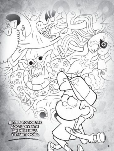 Зустрічай улюблених персонажів "Гравіті Фолз" на сторінках цієї загадкової розмальовки. У загадковому містечку знову безліч пригод і таємниць! Усередині книжки окрім сторінок для розфарбовування багато цікавих завдань. Понад 30 яскравих наліпок.