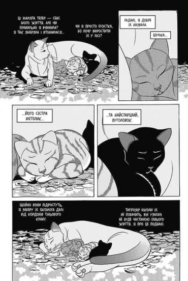 Саші весь час сниться Тигрозір. Попри страх, що він дізнається про кошенят і захоче їх забрати, молода самітниця повертається до лісу. Найголовніше — виростити малечу. Із настанням зимного гололиста Саші дедалі важче годувати родину. Може, кошенятам таки краще пристати до Клану, який їх захистить і навчить виживати? Може, саме тоді вони будуть у безпеці? Але в малечі власні плани — кошенята вирушають у місто Двоногів. І що з усього цього вийде — невідомо.