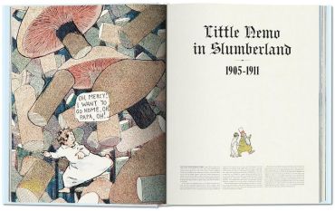 Meet Little Nemo, a diminutive hero of comic narrative, but one of the greatest dream voyagers of the 20th century. The master creation of Winsor McCay (1869–1934), restless sleeper Nemo inspired generations of artists with his weekly adventures from bed to Slumberland, a realm of colorful companions, psychedelic scenery, and thrilling escapades.Nemo’s creator Winsor McCay was a founding figure in the modern American entertainment industry, above all with his revolutionary comics, which set standards for panel layout and storytelling technique, timing and pacing, and architectural and other detail that left an inestimable influence on subsequent artists, including Robert Crumb and Federico Fellini.TASCHEN’s sumptuous Winsor McCay – The Complete Little Nemo collects, in full, glorious color, all 549 episodes of Little Nemo. In the illustrated essay, art historian and comics expert Alexander Braun places Winsor McCay’s life and work within the cultural history of the U.S. media and entertainment industry, and explores the immense art historical value of McCay's dream narrative. At once an adventure story, visual delight, and piece of cultural history, this publication is a tremendous monument to one of the most innovative pioneers—and one of the most intrepid explorers—of comic history.