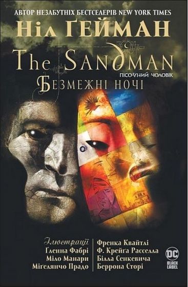 «Ґейман веде нас у шалену подорож крізь ніч Безмежних, від портретів Страждання до садів Судьби, через вечірку на початку Всесвіту та острови Венеції. ПІСОЧНИЙ ЧОЛОВІК завжди експериментував із формою, темами та ілюстраціями, і БЕЗМЕЖНІ НОЧІ продовжують цю традицію».