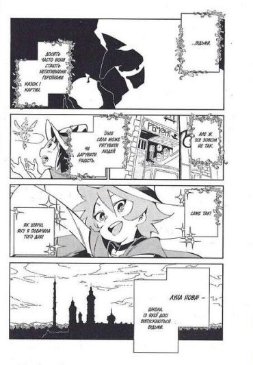 Лиш простягну руку — і розпочнеться моя історія! Захопившись пригодами чарівниці Шяйні Шяріо, Каґарі Ацуко вступає до найвідомішої магічної школи — Луна Нови. Вона не може дочекатися початку безсумнівно незвичного шкільного життя, але чи виправдає воно її очікування? Перед вами — перший том фентезійної історії, сповненої нових зустрічей, відкриттів і дорослих рішень. Як покарання за крадіжку їжі, Ацуко та її подруг змусили прибирати підземну комору. Там вони зустріли старця, який дав їм загадкове яйце, наказавши: «У жодному разі не дайте йому стати метеликом!». Спершу дівчата не знали, що робити, але раптом їм спадає на думку: «А чому б ним не поласувати?». Та на шляху до кухні на них налітає юрба чудовиськ! Чи зможуть вони все ж з’їсти свій омлет?