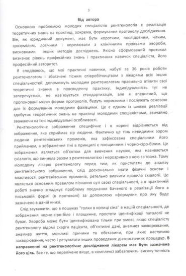 В книзі представлено більш, як 120 зразків протоколів, які систематизовані і легко знаходяться по змісту. Кожний протокол супроводжується відповідними рентгенограмами. Книга містить 220 рентгенограм в 130 малюнках.