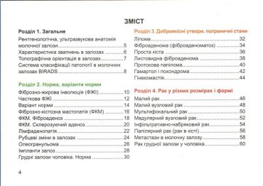 Наглядний матеріал книги представлений 91 мамограмами, 54 ультразвуковими сканами залоз і 26 зразками протоколів рентгенологічного та ультразвукового методів досліджень українською та російською мовами.