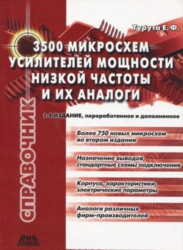 В цьому довіднику наведено схеми підключення та настройки більш ніж 3500 мікросхем підсилювачів потужності низької частоти, що випускаються провідними фірмами-виробниками - ECG-Philips, Matsushita-Panasonic, National Semiconductors, NTE, Philips, RCA Sanyo, Siemens, SGS-Thomson, Telefunken-Temic, Toshiba і ін Тут представлені як стандартні, так і нестандартні (мостові) схеми включення. Мікросхеми, що мають ідентичну електричну схему включення, зібрані в одному розділі, так як практично вони є аналогами. Найбільш важливі параметри мікросхеми зведені у таблицю. Довідник призначений для фахівців в області налагодження та ремонту побутової радіоапаратури, а також радіоаматорів. У 2-е видання додано понад 750 нових мікросхем підсилювачів низької частоти.