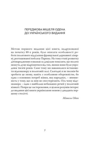 Книга призначена для широкого кола читачів: батьків, які знаходяться в очікування дитини, акушерів та лікарів, які готові переглянути загальноприйняті підходи, студентів медичних навчальних закладів, доул та психологів.