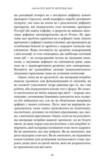 Террі Волс була успішною лікаркою, бігала марафони й обожнювала походи, доки їй не діагностували страшну недугу — розсіяний склероз. Попри всі зусилля опинившись у інвалідному візку, вона вирішила будь-що перемогти хворобу й уникнути страшного вироку. Террі Волс вивчила найновітніші дослідження, перечитала сотні наукових статей, проаналізувала безліч даних. У результаті кропіткої роботи лікарка розробила авторську методику, яка допомагає позбавитися симптомів розсіяного склерозу та інших автоімунних захворювань. Протокол Волс включає дієту й незначні фізичні навантаження, має варіанти для пацієнтів із хворобою різних ступенів тяжкості, а головне — перевірений сотнями людей, які досягли позитивних результатів.