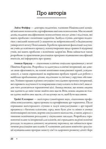 - як допомогти дітям та підліткам з дитячою травмою, синдромом дефіциту уваги та гіперактивності, розладами аутистичного спектру, розладами поведінки, тривогою та депресією