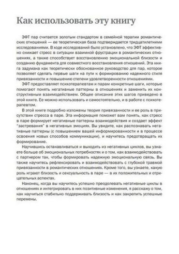 В данной рабочей тетради для пар описаны принципы ЭФТ, которые помогут развить навыки, позволяющие подходить к отношениям с любопытством, непредвзятостью и готовностью говорить, слушать и восстанавливать отношения.
