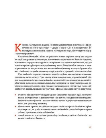 «Стосунки в родині. Як стати усвідомленими батьками і сформувати сімейну культуру» — це друга книжка серії «Сім’я в пріоритеті».